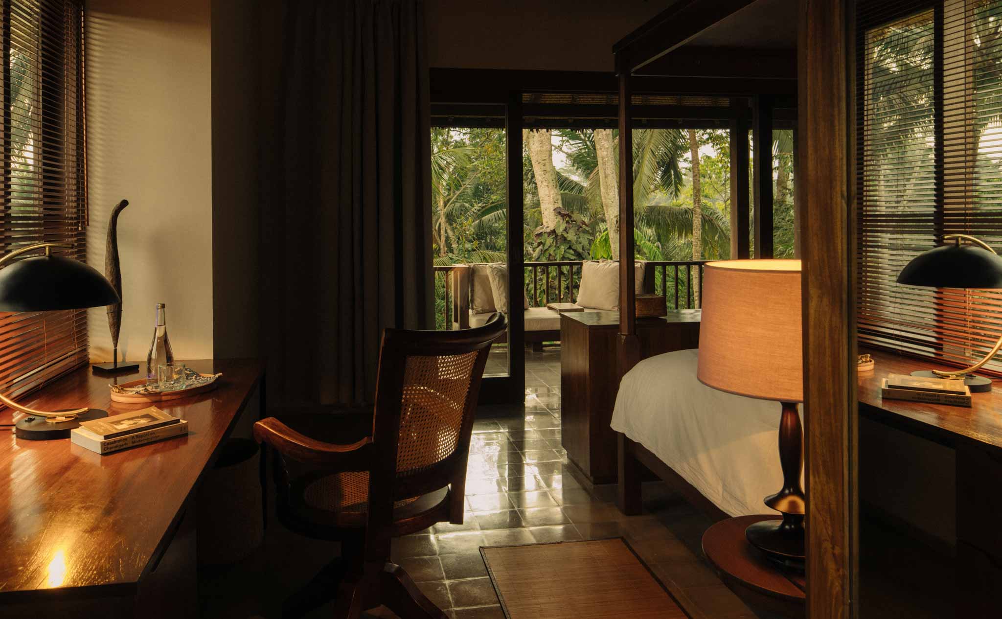 Amala Villas Ubud consists of three houses: the Main House, Valley House, and North House. The Main House features a living room, kitchen, and a master guest room called Bodhi. The North House includes a second master suite named Kendal and a billiards lounge. The Valley House contains the dining room, karaoke/media room, and three additional rooms — Wani, Arbesia, and Jarak.